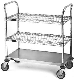 Transport goods with highly maneuverable utility carts. Use in mailrooms, retail