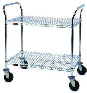 Transport goods with highly maneuverable utility carts. Use in mailrooms, retail